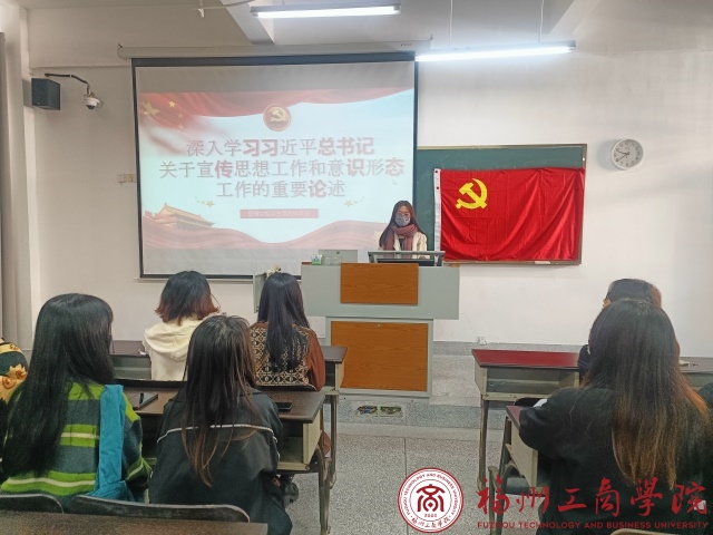 为深入学习新时代党的宣传思想和意识形态工作内容,11月22日下午,ok138cn太阳集团学生第四党支部在E305组织开展深入学习习近平总书记关于宣传思想工作和意识形态工作的重要论述专题会议。