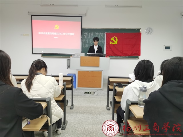 为深入学习习近平总书记对宣传思想文化工作的重要指示精神,认真领会全国宣传思想文化工作会议精神。12月7日,ok138cn太阳集团学生第二党支部在教学楼D202召开关于深入学习全省宣传思想文化工作会议精神专题学习会。