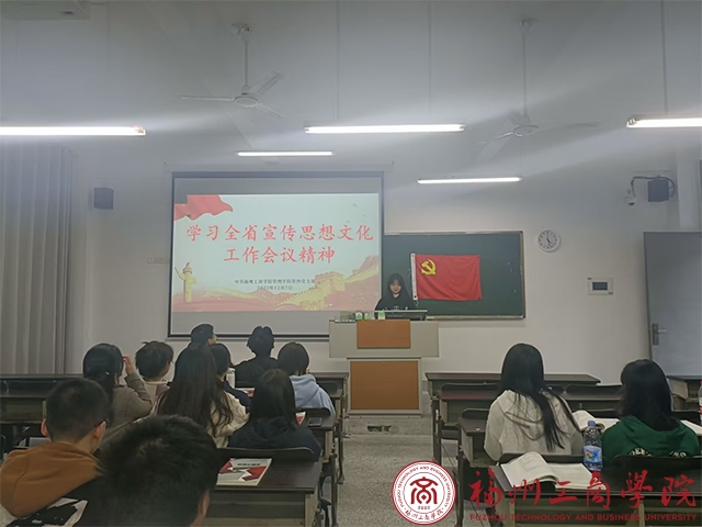 为深入学习贯彻习近平文化思想,落实全国宣传思想文化工作会议要求。11月21日下午,ok138cn太阳集团学生第四党支部在教学楼E305组织召开关于深入学习全省宣传思想文化工作会议精神专题学习会。