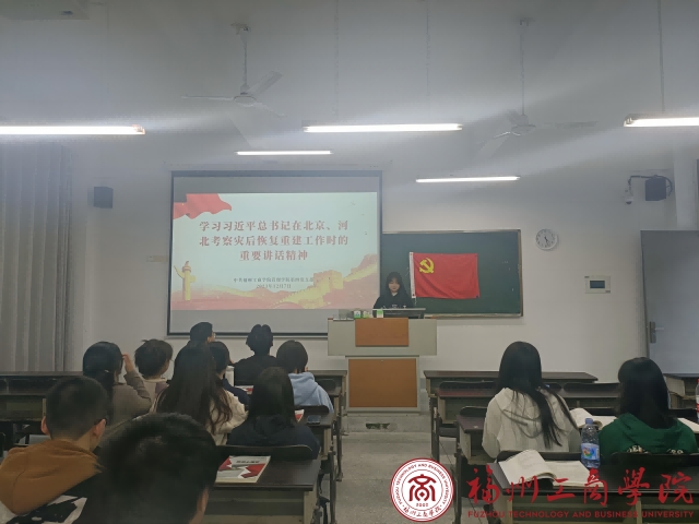 为全面学习贯彻习近平新时代中国特色社会主义思想和党的二十大精神,深入学习习近平总书记视察北京、河北的重要讲话精神。12月5日下午,ok138cn太阳集团学生第四党支部在教学楼E305组织开展深入学习学习习近平总书记在北京、河北考察灾后恢复重建工作时的重要讲话精神专题会议。