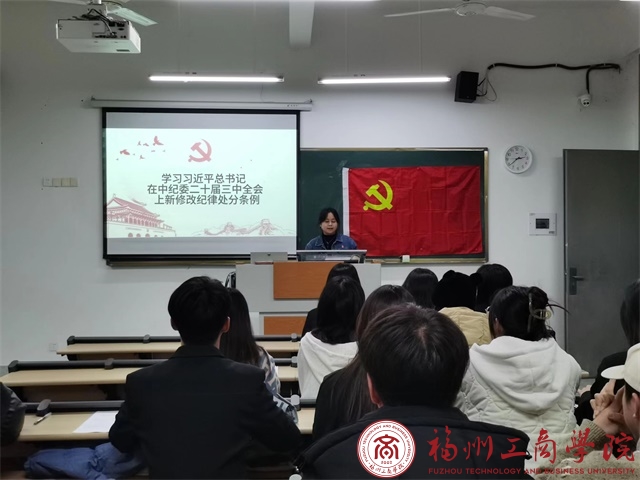 会议伊始,支部书记李灵娇首先对《条例》修改前后的差异进行解读,引领学生党员提高思想认识,准确掌握此次《条例》总则修订的重点。会议指出,新修订的《条例》仍坚持以习近平新时代中国特色社会主义思想为指导,在政治纪律、组织纪律、廉洁纪律等各项纪律的具体条款中,处处体现出对党的二十大精神和党章的落实。会议强调,学生党员要始终坚持担当作为,以严明的纪律锤炼过硬作风,增强自信自觉,把学习《条例》与学习党章党规相结合,做到学深悟透,提高自身的防腐拒腐的能力。