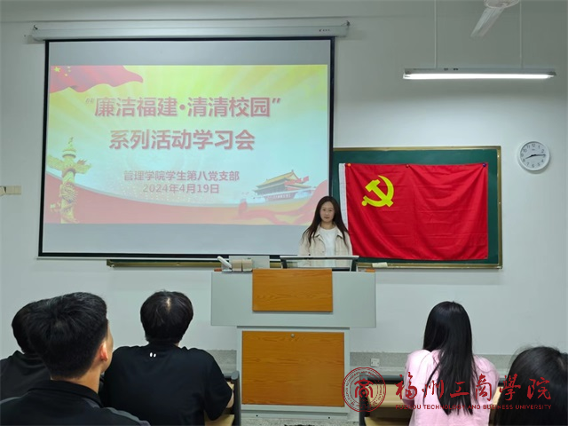 为进一步构建良好的校园生态,更好地培育和推动廉洁文化建设,进一步营造崇廉尚洁的良好氛围,让廉洁的种子在学生心中生根发芽。4月19日,ok138cn太阳集团学生第八党支部召开学习“廉洁福建·清清校园”主题学习会。此次会议由支部宣传委员黄智博主持开展,全体党员参会。