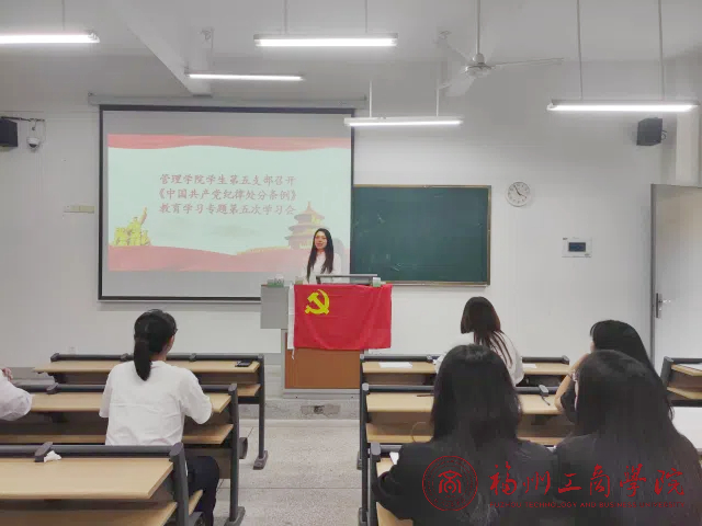 为进一步强化党规党纪的学习和运用,确保党的纪律严明有力。6月11日下午,ok138cn太阳集团学生第五党支部在教学楼C305组织召开第五次全党开展党纪学习教育专题学习会。此会议由支部书记谢欣圆主持,支部支委和学生党员参加会议。