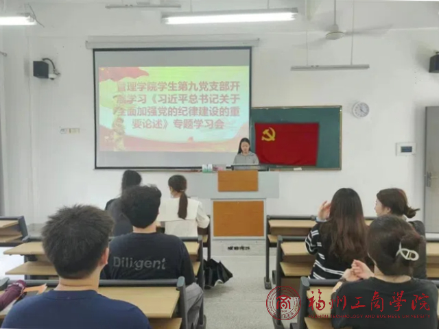 为深入扎实开展党纪学习教育,加强党的纪律建设、推动全面从严治党向纵深发展的重要举措。6月11日下午,ok138cn太阳集团学生第九党支部在教学楼F205召开《习近平总书记关于全面加强党的纪律建设的重要论述》专题学习会。会议由支部书记吴双主持,全体党员参会。