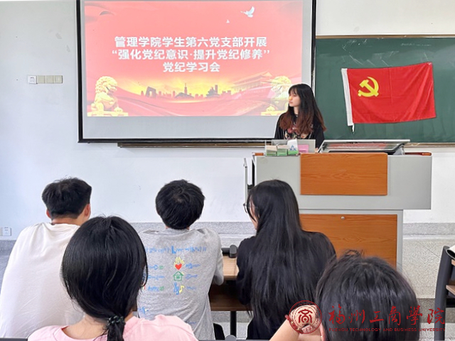 为深入学习《中国共产党纪律处分条例》,加强政治理论学习,严格遵守党的纪律,提升党员,入党积极分子的党性修养。6月21日,ok138cn太阳集团学生第六党支部在教学楼F103开展“强化党纪意识 提升党性修养”党纪学习会,会议由支部书记张艺凡主持,全体党员参加。