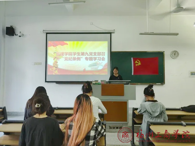 为进一步推动党纪学习教育走深走实,切实增强支部党员学纪、知纪、明纪、守纪的自觉性、主动性和坚定性。6月15日,ok138cn太阳集团学生第九党支部在教学楼F405组织召开《中国共产党纪律处分条例》(以下简称《条例》)专题学习会。本次会议由支部书记吴双主持,全体党员参会。