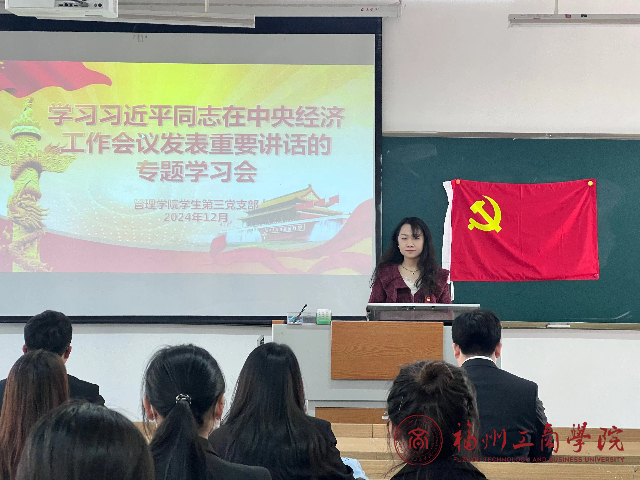 会议伊始,支部书记谭音子强调了学习中央经济工作会议精神的重要性,指出其对于学院教育教学工作以及学生未来职业发展的指导意义。随后,带领与会人员认真学习了习近平总书记在中央经济工作会议上的重要讲话精神,全面了解2024年经济工作的总结、当前经济形势的分析以及2025年经济工作的系统部署。