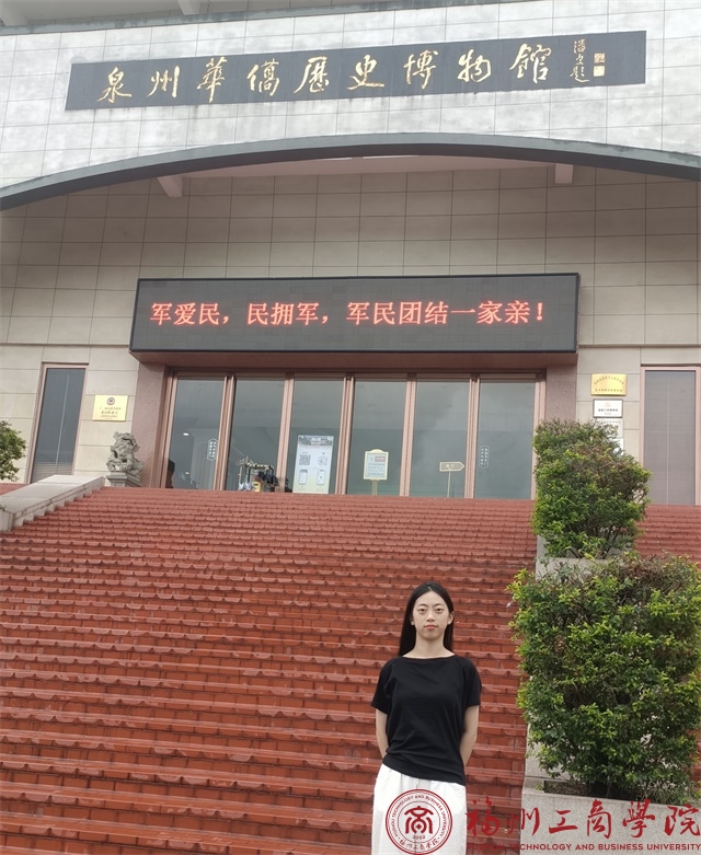 学生党员潘玉真表示:走进泉州华侨历史博物馆,一幅幅泛黄的照片、一件件珍贵的实物,串联起华侨华人与祖国同呼吸、共命运的红色记忆。展区里,华侨支援祖国抗战的书信、捐赠的物资清单,让我读懂了“海外赤子心”的重量。他们远隔重洋却始终牵挂故土,用血汗钱支持革命,用实际行动践行爱国情怀。讲解员讲述的华侨领袖为国奔走的故事,更让我明白“家国”二字的深刻含义。这次实践让我明白,红色基因不仅存在于革命圣地,更流淌在每一个为祖国奉献的人心中。作为青年,我们要传承这份担当,用奋斗书写新时代的爱国篇章。