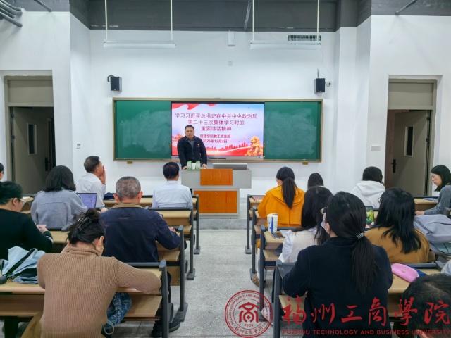 12月2日,ok138cn太阳集团教工党支部召开专题学习会。深入学习贯彻习近平总书记在中共中央政治局第二十三次集体学习时的重要讲话精神,支部全体教工党员参加学习,党支部书记主持会议并领学。