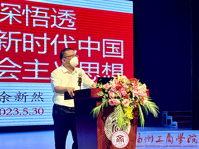 课程伊始,余新然书记以电视剧《人民的名义》中经典反腐片段为引,展开了党课讲授。他提到,学习习近平新时代中国特色社会主义思想,首先要提高站位,增强学习思想自觉,之后才能学深悟透,掌握思想理论利器。随后,他对全体学员提出三点要求:一是希望全体学员“学先一步”,深刻领悟在全党深入开展学习贯彻习近平新时代中国特色社会主义思想主题教育重大意义,做到理论学习快人一步;二是希望全体学员“学实一筹”,深入把握贯彻习近平新时代中国特色社会主义思想的立场观点方法,做到思想站位高人一筹;三是希望全体学员“学深一层”,确保习近平新时代中国特色社会主义思想和二十大精神在本校落地生根、开花结果,做到工作实践超人一层。