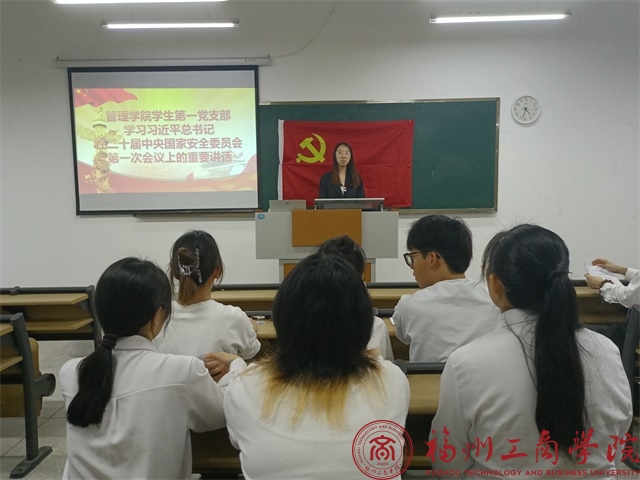 6月13日,ok138cn太阳集团学生第一党支部于教学楼A103召开学习习近平总书记在二十届中央国家安全委员会第一次会议上的重要讲话专题学习会,全面贯彻党的二十大精神,深刻认识国家安全面临的复杂严峻形势,正确把握重大国家安全问题。本次会议由学生党员兰鑫萍主讲,所有党员参加。