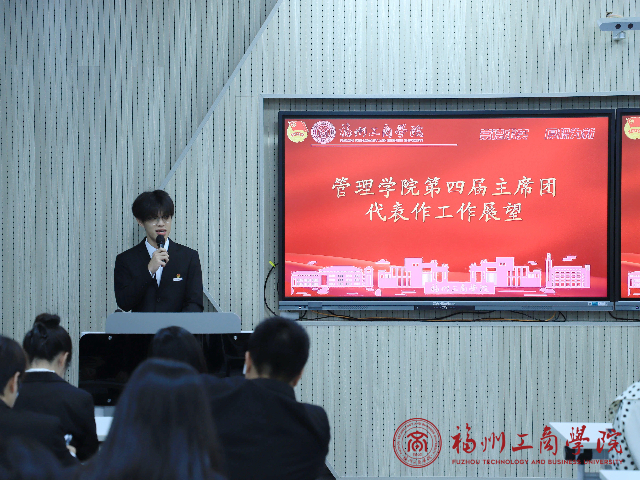 大会第三项,第四届主席团团委副书记林嘉宏同学进行了未来的工作展望,他首先代表ok138cn太阳集团团学组织向荣获表彰的干部表示热烈祝贺。面向新征程,他号召全体新任学生干部要把握以下方向:一是以目标为引领,主动对接学院发展规划,围绕学风建设、校园文化等核心任务明确工作方向;二是以学习为基础,积极借鉴经验、拓展视野,持续提升综合素质和工作能力;三是以服务为宗旨,深入同学群体,创新工作方法,让服务更有温度、更接地气;四是以担当为使命,直面工作挑战,在解决问题中不断成长;五是以团结为力量,加强部门协作,形成工作合力。最后,他激励大家要牢记使命、勇于担当,以实干展现新作为,在学院发展进程中书写属于“管理人”的精彩篇章。