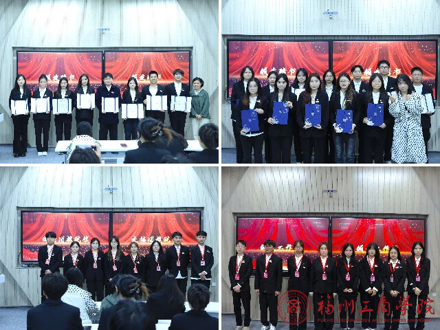 大会第四项,颁发聘书。伴随着掌声响起,团学组织干部们依次上台,由张春梅老师为第三届主席团成员颁发聘书。随后第三届主席团成员为各部门第一负责人颁发聘书。