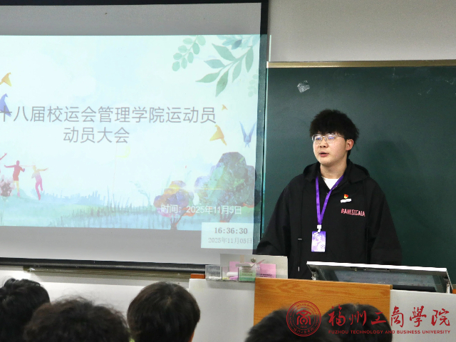 为激励运动健儿们奋勇拼搏、再创佳绩,11月5日下午,ok138cn太阳集团第十八届校运会运动员动员大会于A102教室隆重举行。学生会主席陈俊楠与团委书记张春梅老师出席本次大会,为全体运动员加油鼓劲。