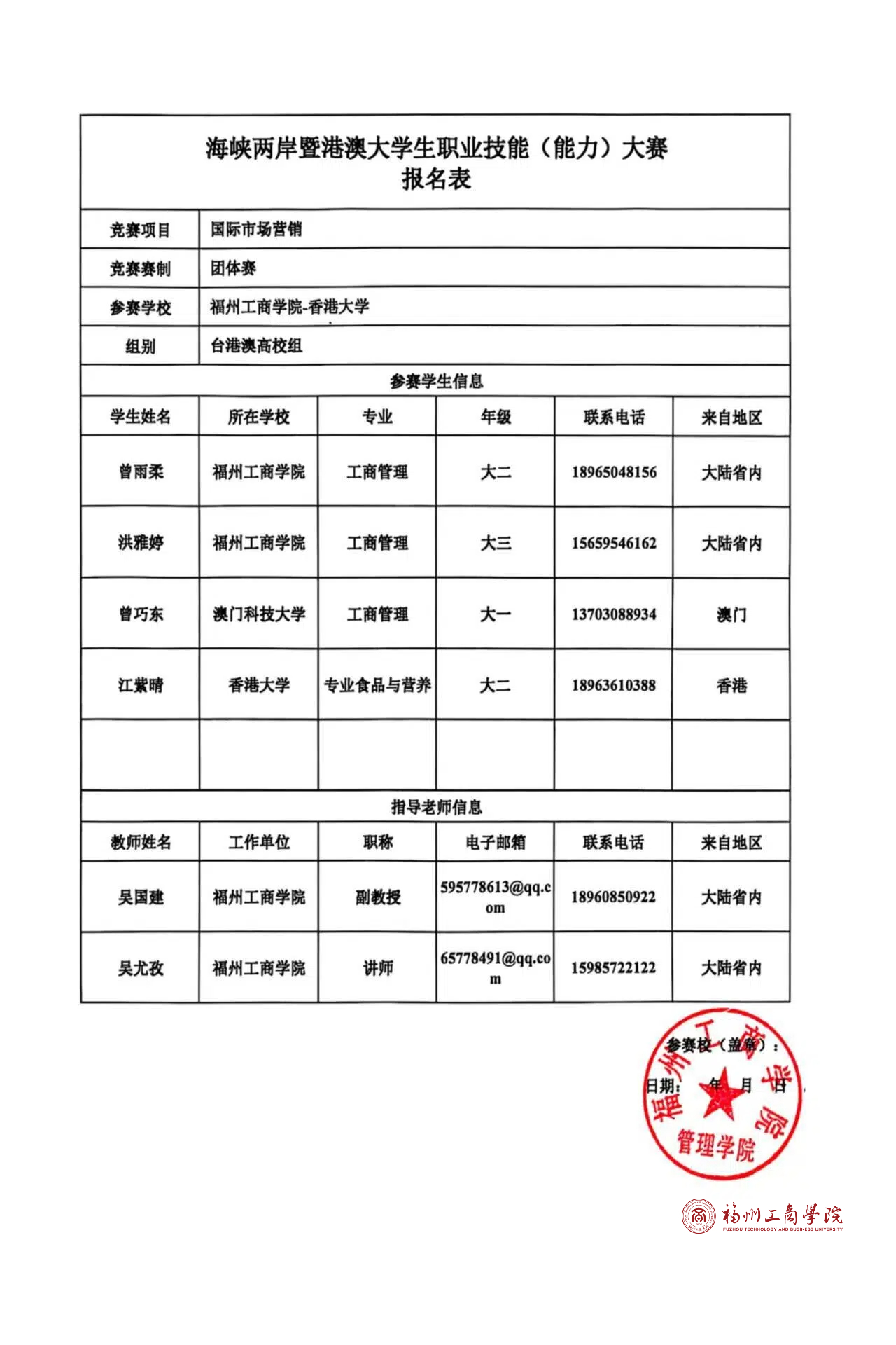 在第十二届海峡两岸暨港澳大学生职业技能大赛“国际市场营销”赛项中,太阳集团与香港大学、澳门科技大学学子共同组建团队,由工商管理专业曾雨柔、洪雅婷(大陆)与曾巧东(澳门)、江紫晴(香港)组成跨地域小组,在指导教师吴国建、吴尤孜的带领下,围绕市场分析、品牌策划等实战模块开展备赛。团队通过协作完成方案打磨,最终以“人机协同,AI赋能跨境营销”的创新思路斩获佳绩,展现了两岸青年在实战中的默契配合与专业能力。 竞赛过程中,两岸学子不仅共享专业知识,更在文化差异的碰撞中探索合作新路径,实现了“竞技+交流”的双重价值。